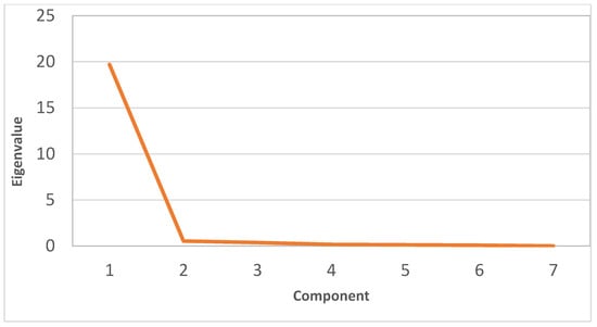 Scree plot of the PCA components for the damask rose parameters in response to the foliar application of ginger extract and fulvic acid.