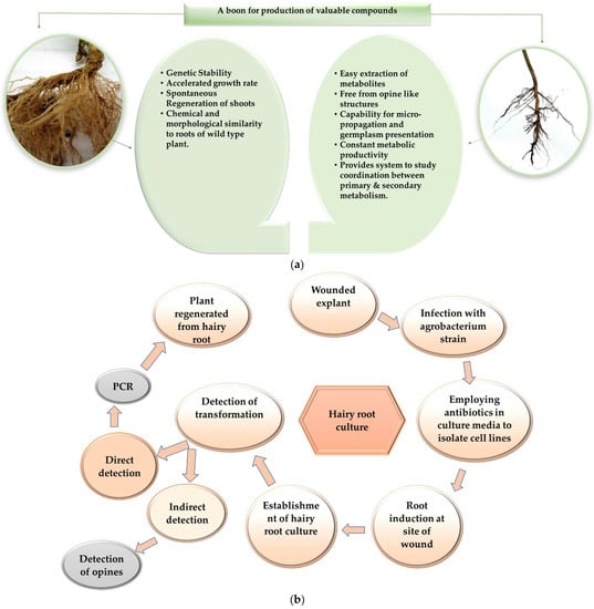 - Mehrotra, S.; Mishra, S.; Srivastava, V. Hairy Roots Biotechnology Unzipped: A Journey of Reality and Promises. In Hairy Root Cultures Based Applications; Springer: Berlin/Heidelberg, Germany, 2020; pp. 1–10. [Google Scholar]