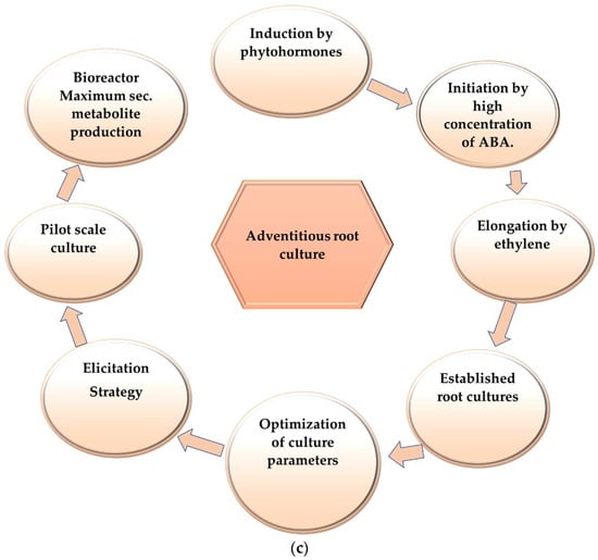 - Murthy, H.N.; Dalawai, D.; Bhat, M.A.; Dandin, V.S.; Paek, K.Y.; Park, S.Y. Biotechnological Production of Useful Phytochemicals from Adventitious Root Cultures. In Plant Cell and Tissue Differentiation and Secondary Metabolites: Fundamentals and Applications; Springer: Berlin/Heidelberg, Germany, 2021; pp. 469–485. [Google Scholar]
