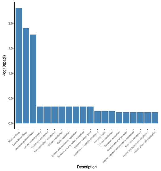 2.5. Differential Gene Expression Related to Photosynthesis-Antenna Proteins and Porphyrin and Chlorophyll Metabolism