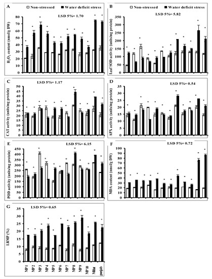 GMP was determined following the formula given below [51]. It is the square root of productive yield under water deficit stress and non-stress conditions, respectively: