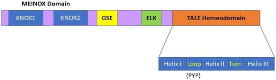 - Burglin, T.R. Analysis of TALE Superclass Homeobox Genes (MEIS, PBC, KNOX, Iroquois, TGIF) Reveals a Novel Domain Conserved between Plants and Animals. Nucleic Acids Res. 1997, 25, 4173–4180. [Google Scholar] [CrossRef]