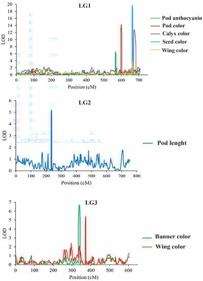 3.3. QTL Analysis for Flower-, Pod-, and Seed-Related Traits of the Winged Bean