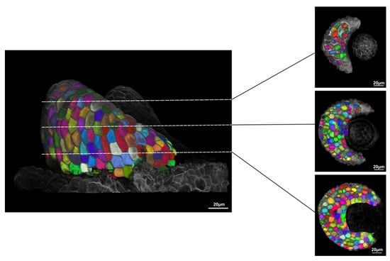 - Vijayan, A.; Tofanelli, R.; Strauss, S.; Cerrone, L.; Wolny, A.; Strohmeier, J.; Kreshuk, A.; Hamprecht, F.A.; Smith, R.S.; Schneitz, K. A digital 3D reference atlas reveals cellular growth patterns shaping the Arabidopsis ovule. eLife 2021, 10, e63262. [Google Scholar] [CrossRef] [PubMed]