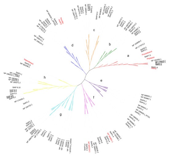 Regarding the presence of cysteines in StAPs, the cysteine content was similar within AP groups, as previously reported [10,12]. It was found that 13 cysteines were the most frequent number, with an upper and lower limit of 9 to 17.
