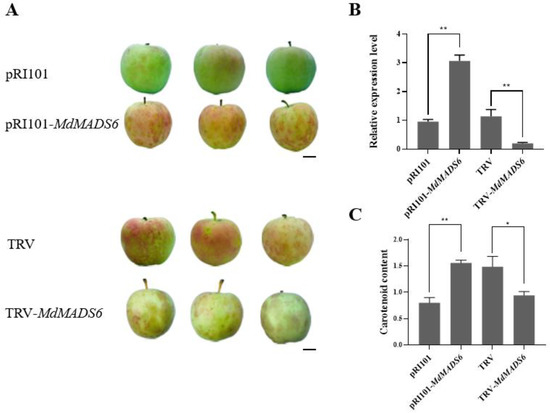 2.2. MdMADS6 Promotes Apple Fruit Ripening