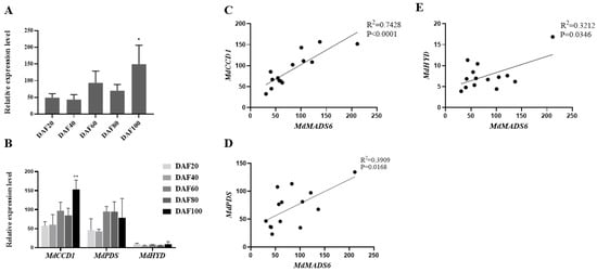 APA StyleLi, Q., Wang, T., Xu, C., Li, M., Tian, J., Wang, Y., Zhang, X., Xu, X., Han, Z., & Wu, T. (2022). MdMADS6 Recruits Histone Deacetylase MdHDA19 to Repress the Expression of the Carotenoid Synthesis-Related Gene MdCCD1 during Fruit Ripening. Plants, 11(5), 668. https://doi.org/10.3390/plants11050668