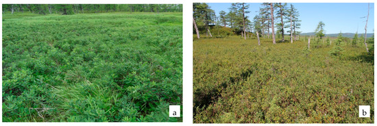 In the spectrum of geo-elements and types of ranges of the Bolshoy Shantar Island’s mire flora, a high proportion are boreal and holarctic species, which is characteristic of the mire floras of the taiga zone in general [22,23]. The specificity of geographical structure is ensured by the Russian Far Eastern and Russian Far Eastern-North American groups of plants, genetically related to those of the Pacific coast, and also by montane species widespread in the Arctic and in montane ecosystems of the Eurasian continent.