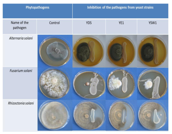 Antimicrobial activities of isolated yeast strains against three phytopathogens: Alternaria solani pathovar. tobacco, Rhizoctonia solani, and Fusarium solani pathovar. phaseoli.