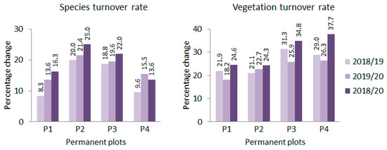 Additionally, a two-year turnover rate (2018/2020) was also calculated to detect changes in the flora and in the vegetation.