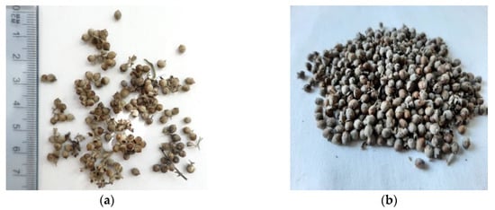 Fruits from V. agnus-castus L. (authors’ images). (a) Fruits from south-central region of Bulgaria. (b) Fruits from north-east region of Bulgaria.