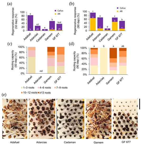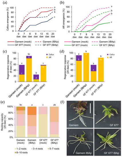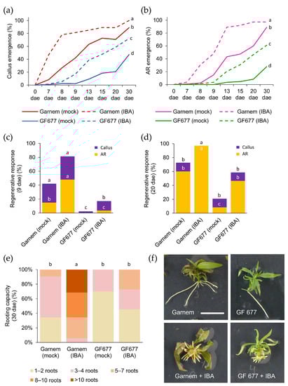 2.2. Regenerative Response of Garnem and GF 677 during In Vitro Rooting