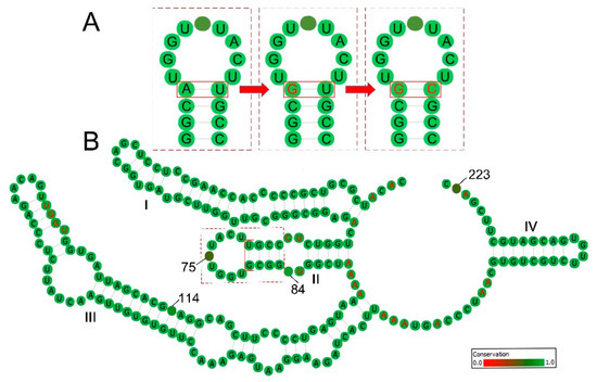 - Dixon, M.T.; Hillis, D.M. Ribosomal RNA secondary structure: Compensatory mutations and implications for phylogenetic analysis. Mol. Biol. Evol. 1993, 10, 256–267. [Google Scholar] [CrossRef][Green Version]