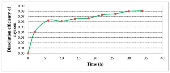 We also determined the dissolution rate constant of β-myrcene (k = 0.1946 h−1), which is an important data for industrial scale applications.