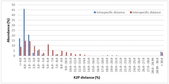 - Meier, R.; Zhang, G.; Ali, F. The use of mean instead of smallest interspecific distances exaggerates the size of the “barcoding gap” and leads to misidentification. Syst. Biol. 2008, 57, 809–813. [Google Scholar] [CrossRef]