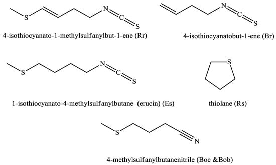 - Bell, L.; Kitsopanou, E.; Oloyede, O.O.; Lignou, S. Important Odorants of Four Brassicaceae Species, and Discrepancies between Glucosinolate Profiles and Observed Hydrolysis Products. Foods 2021, 10, 1055. [Google Scholar] [CrossRef] [PubMed]