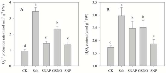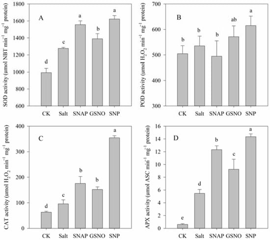 2.5. Effects of Salt and NO Donors on Antioxidant Enzyme Activities