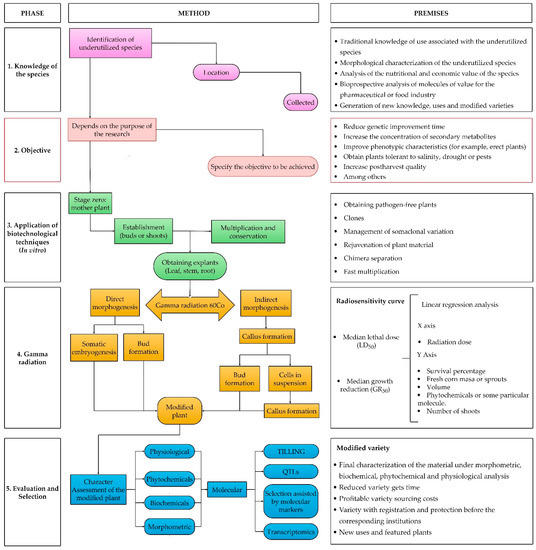Chicago/Turabian StyleRiviello-Flores, María de la Luz, Jorge Cadena-Iñiguez, Lucero del Mar Ruiz-Posadas, Ma. de Lourdes Arévalo-Galarza, Israel Castillo-Juárez, Marcos Soto Hernández, and Carlos Roman Castillo-Martínez. 2022. "Use of Gamma Radiation for the Genetic Improvement of Underutilized Plant Varieties" Plants 11, no. 9: 1161. https://doi.org/10.3390/plants11091161