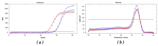 - Teter, S.; Steffen, L. Real-Time qPCR: Guidelines for a Comparison of Reagent Performance. Application Note #AN299, 2017, Retrieved from Promega Corporation Website. Available online: https://ita.promega.com/resources/pubhub/applications-notes/an299-real-time-qpcr-guidelines-for-acomparison-of-reagent-performance/ (accessed on 27 April 2021).