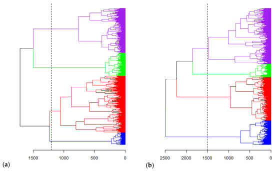 - Galili, T. dendextend: An R package for visualizing, adjusting and comparing trees of hierarchical clustering. Bioinformatics 2015, 31, 3718–3720. [Google Scholar] [CrossRef]