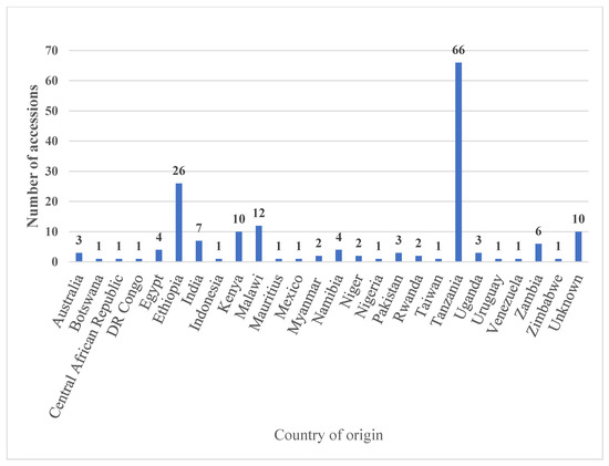 The subset contained germplasm from a range of African countries, representing germplasm from low, medium and high-altitude areas, indicating its wide climatic representation. We believe the inclusiveness of germplasm from different ranges of altitudes in the subset complements the diversity niche, representing the diverse agro-ecologies occupied by the species.