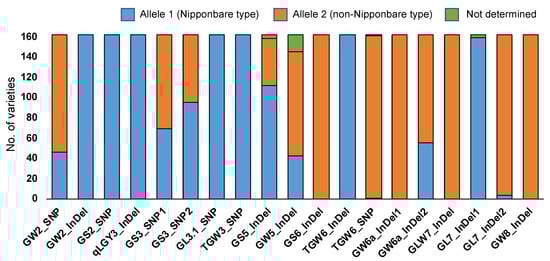 4.3. Detection of Functional Mutations at Grain-Related Loci Using PCR-Based Markers