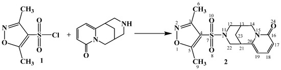 Ibrayev MK, Nurkenov OA, Rakhimberlinova ZB, Takibayeva AT, Turdybekov DM, Seilkhanov TM, Issabayeva MB, Kelmyalene AA, Kezdikbayeva AT, Mendibayeva AZ. Synthesis, Properties and Spatial Structure of 4-[(3,5-Dimethyl-1,2-oxazol-4-yl)sulfonyl]cytisine. Plants. 2023; 12(1):137. https://doi.org/10.3390/plants12010137