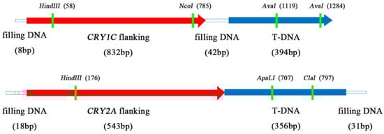 Schematic map of flanking sequences of CRY1C and CRY2A insertion sites.