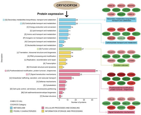 Cluster analysis of differentially expressed proteins (DEPs). Clusters of Orthologous Groups of proteins (COG) displayed the degree of accumulation of conserved proteins among samples of NIL groups CH891(1C+2A).