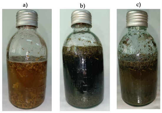 The plants were ground in a porcelain mortar to a powdery state before extraction. An extract was prepared in a 100 mL Soxhlet extractor using 10.2 g of air-dried plant material (whole plant) in 250 mL of 70% ethanol for 12 h within 50 cycles. The dry matter content of the obtained ethanol extracts was measured in five repetitions using the oven-drying method at 105 °C until constant weight [42].