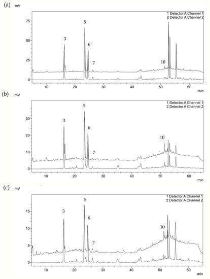 | 3 | Neochlorogenic acid (5-O-caffeoylquinic acid) | 11.47 ± 0.09 | 6.56 ± 0.05 | 3.27 ± 0.02 |