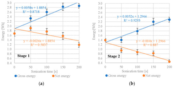 Correlations between UD exposure time and gross/net energy gain (a) S1—Scenedesmus sp., (b) S2—Pinnularia sp.