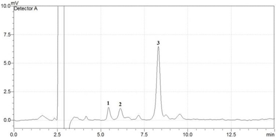 SPE was used for removing the unwanted co-extracted compounds as well as for protecting the analytical column, using Sep-Pak C18 cartridges (Waters Assiciates Inc., Milford, MA, USA). The cartridges were first preconditioned by flushing with 4 mL methanol, then with 4 mL ultrapure water at a flow rate of 1 mL/min [47,53]; 5 mL extracts were passed through the activated cartridges, discarding the first milliliter, then the eluates were collected in 2 mL vials, being subjected to HPLC.