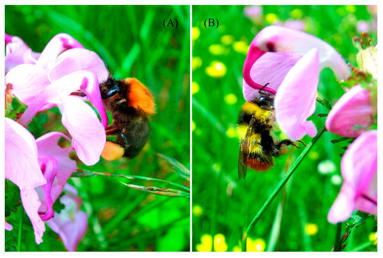 Main bumble-bee species visiting the flowers of Pedicularis rhinanthoides Schrenk subsp. tibetica (Bonati) Tsoong: (A), Bombus festivus; (B), B. friseanus.