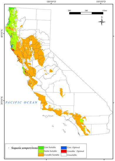 - Torregrosa, A.; Taylor, M.D.; Flint, L.E.; Flint, A.L. Present, Future, and Novel Bioclimates of the San Francisco, California Region. PLoS ONE 2013, 8, e58450. [Google Scholar] [CrossRef]