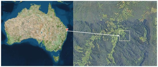 Map of the study site in the Tallebudgera Valley, southeast Queensland, created in Nearmap [].