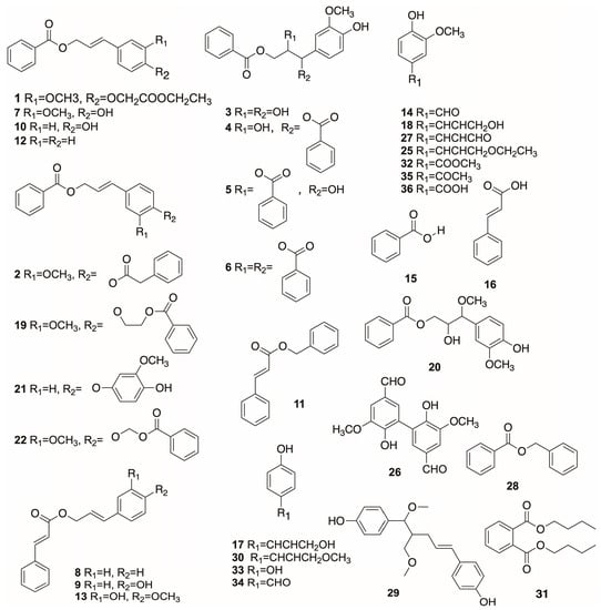 | 18 | coniferyl alcohol | Balsamic acid esters | [31] |