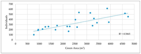 2.4. Effect of the Area on the Number of Individuals