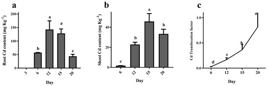 Cd translocation factor was calculated by dividing the Cd concentration of the shoot by the Cd concentration of the root [89].