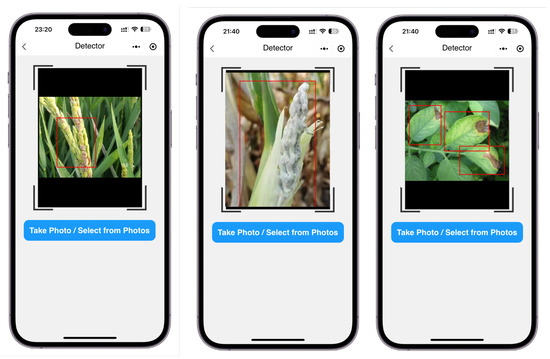 The experimental results showed that the model could run under a variety of computing platforms, including GPU platforms with high computational performance and mobile terminal platforms with very low computing power, and its inference speed, 58 FPS, was faster than that of other mainstream models. In terms of model accuracy, we enhanced the subclasses with low detection accuracy by data augmentation methods and verified them by ablation experiments. The model was finally able to achieve a 0.94 precision. In order to make full use of the above experimental results, we developed an application based on the model so that the model could be effectively deployed in real agricultural scenarios.