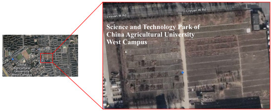 This figure presents the dataset collection sites (Science and Technology Park of the West Campus of China Agricultural University) on Google Map.