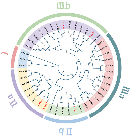 2.2. Phylogenetic Analysis of LcCKX Proteins