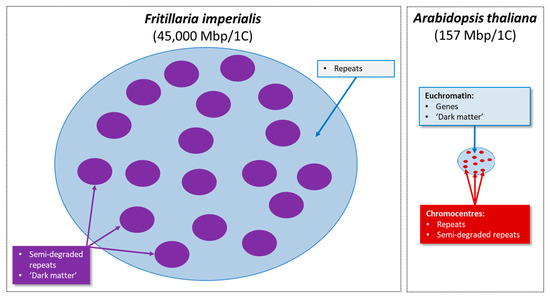 - Kelly, L.J.; Renny-Byfield, S.; Pellicer, J.; Macas, J.; Novak, P.; Neumann, P.; Lysak, M.A.; Day, P.D.; Berger, M.; Fay, M.F.; et al. Analysis of the giant genomes of Fritillaria (Liliaceae) indicates that a lack of DNA removal characterizes extreme expansions in genome size. New Phytol. 2015, 208, 596–607. [Google Scholar] [CrossRef]