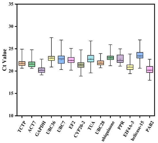Chicago/Turabian StyleLiu, Hongli, Jing Liu, Peng Chen, Xin Zhang, Ke Wang, Jiuxing Lu, and Yonghua Li. 2023. "Selection and Validation of Optimal RT-qPCR Reference Genes for the Normalization of Gene Expression under Different Experimental Conditions in Lindera megaphylla" Plants 12, no. 11: 2185. https://doi.org/10.3390/plants12112185