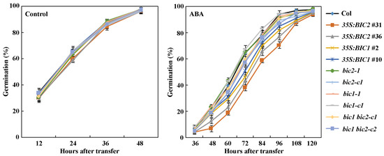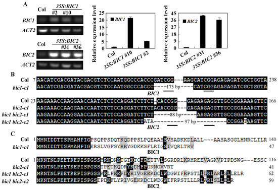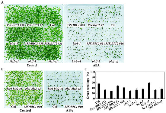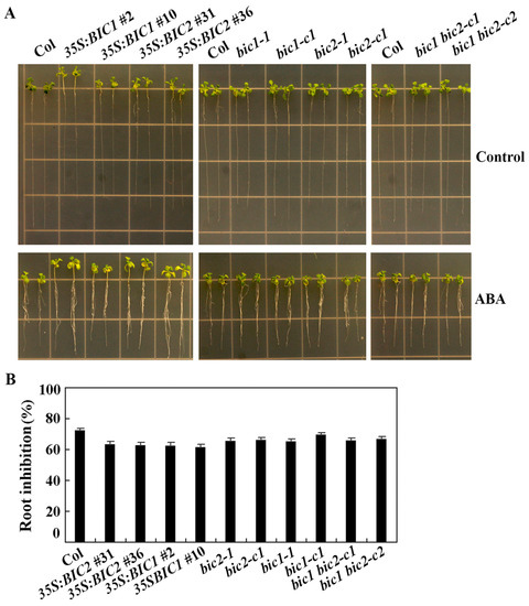 2.1. Expression of BIC2 Is Induced by ABA Treatment