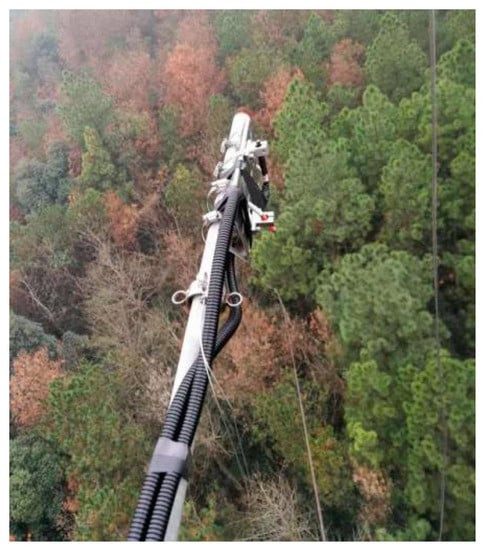 Using the flux tower of the subtropical evergreen coniferous forest in Qianyanzhou station, an automatic observation system for the solar-induced chlorophyll fluorescence of vegetation was installed at a distance of 30 m from the canopy. The front ends of two optical fibers were installed on the optical fiber fixing device to ensure that the top and bottom were as vertical as possible. The upward optical fiber was connected to a cosine corrector (CC-3) to accurately measure the solar incident spectrum, and the other downward optical fiber was used to observe the vegetation canopy reflection spectrum, and the approximate area of the ground measured by the downward optical fiber of the equipment is 100 m2. The spectrometer recorded two downward solar illumination spectral signals and one upward ground reflection spectral signal in the order of solar incidence, ground reflection and solar incidence. The equipment installation is shown in Figure 8.