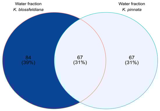 Venn diagram based on qualitative analysis of the water fractions of Kalanchoe blossfeldiana and Kalanchoe pinnata.