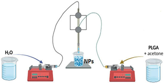 Schematic representation of the microfluidic reactor used for the synthesis of PLGA NPs.
