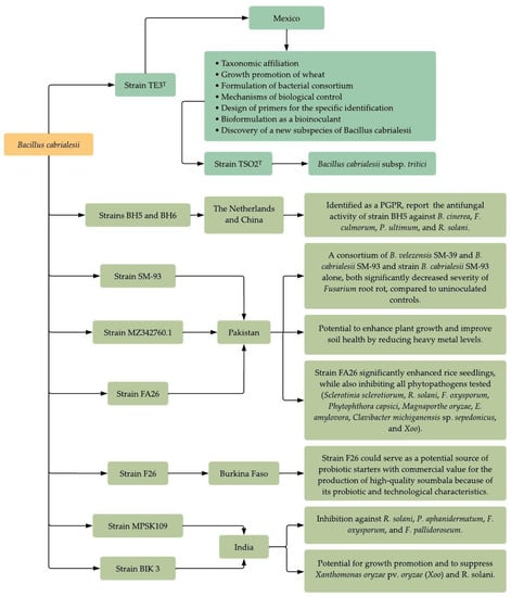 The study of B. cabrialesii is not limited to our country, since there are many studies from around the globe reporting the isolation and identification of strains belonging to this species from various crops and different locations, highlighting B. cabrialesii as a plant growth-promoting bacterium. Moreover, these studies also report this bacterial species as a biocontrol species against fungal and bacterial pathogens.