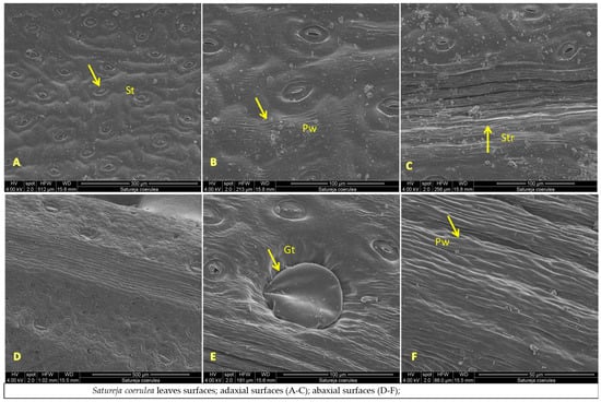- Satil, F.; Kaya, A. Leaf anatomy and hairs of Turkish Satureja L. (Lamiaceae). Acta Biol. Cracov. Ser. Bot. 2007, 49, 67–76. Available online: https://abcbot.pl/pdf/49_1/09satil.pdf (accessed on 20 April 2023).
